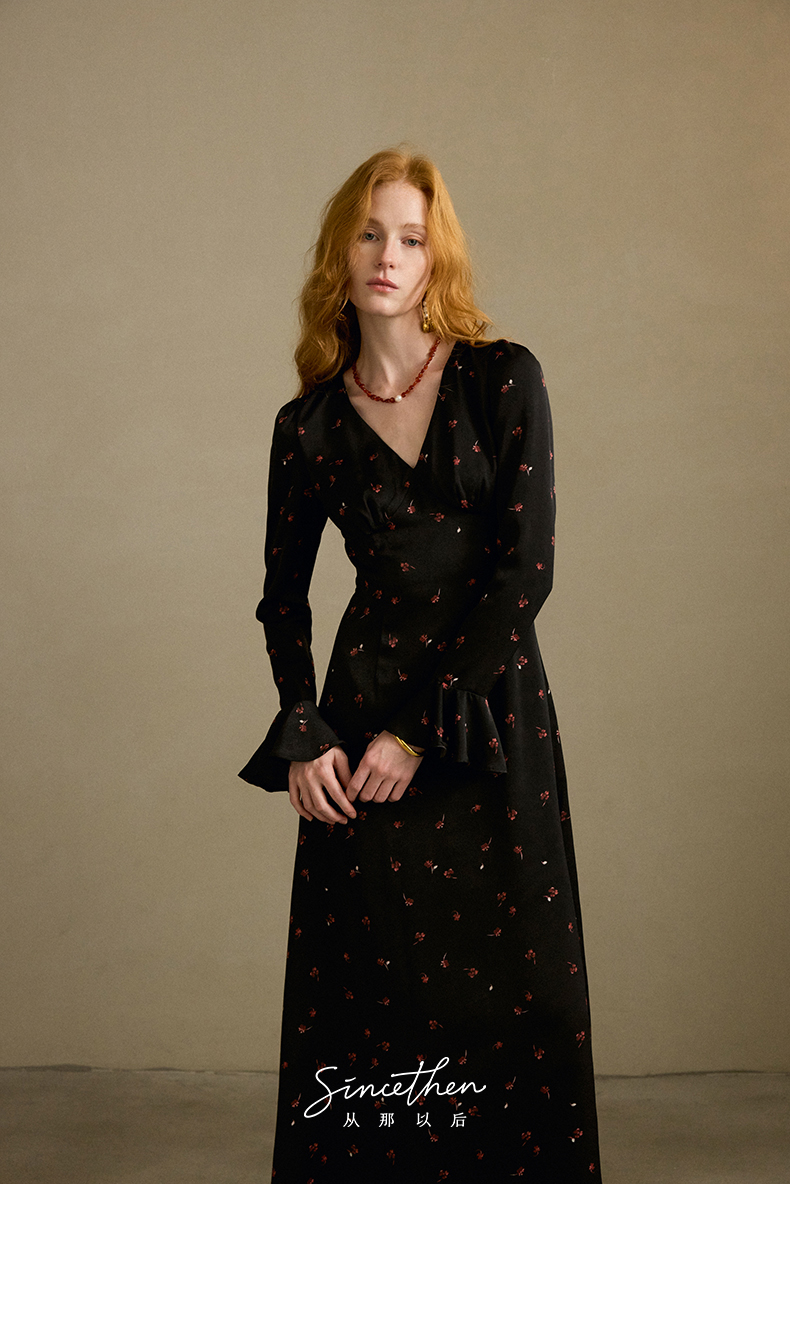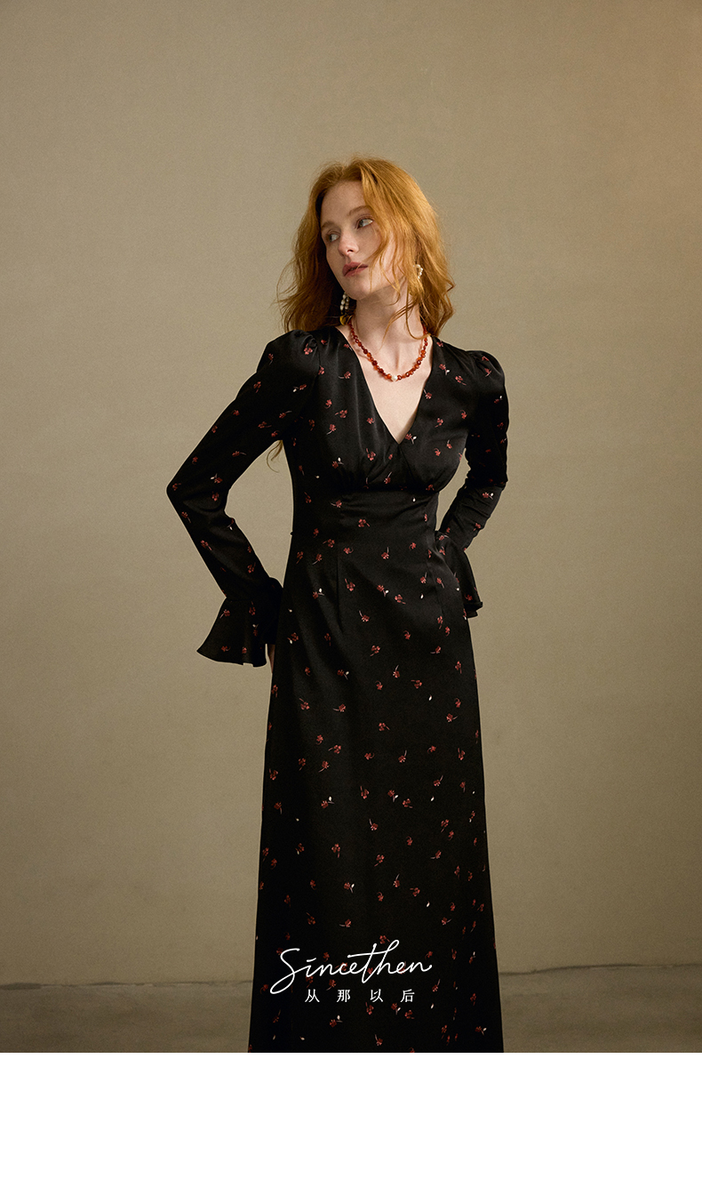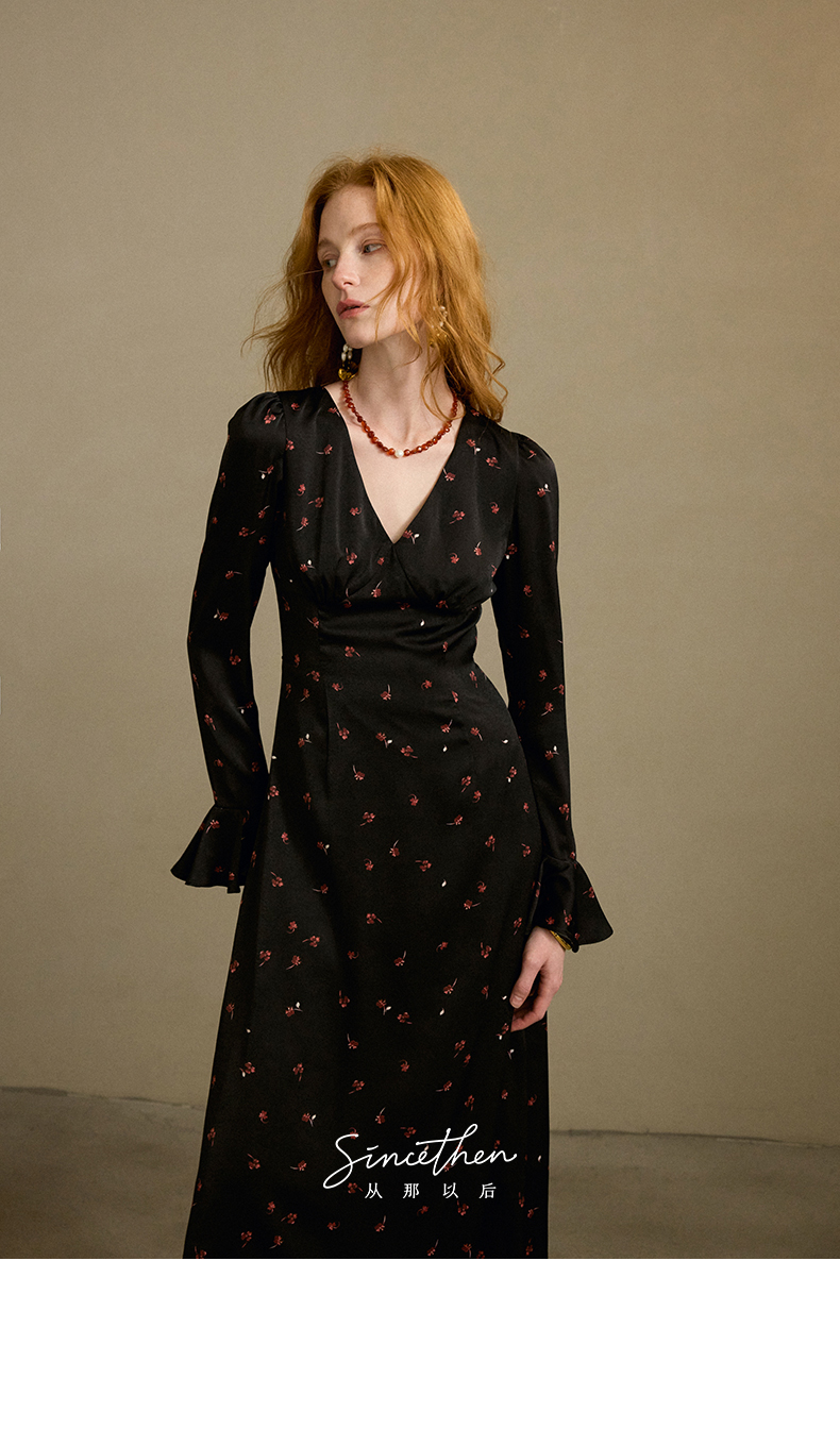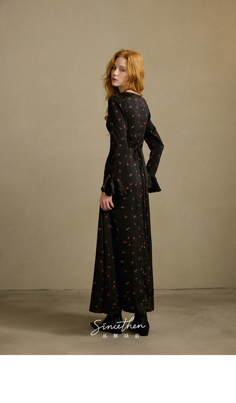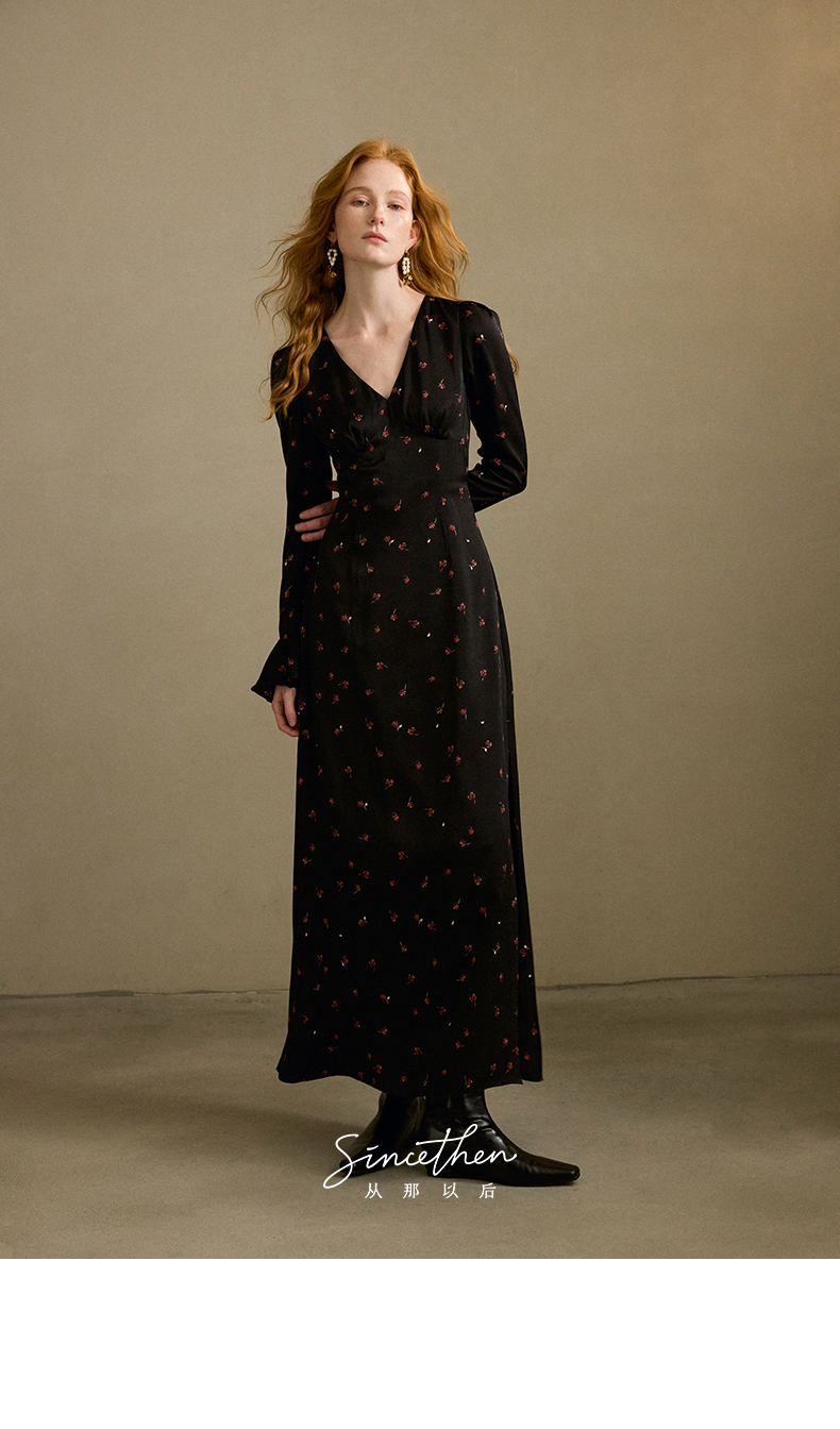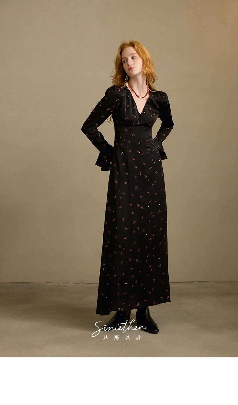 ST V-Neck Black Floral Long Dress