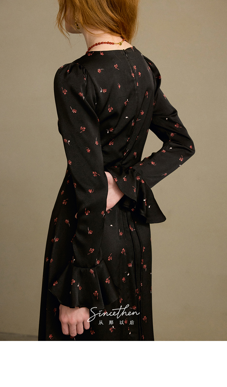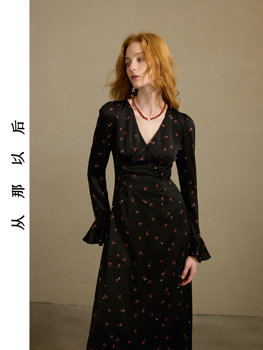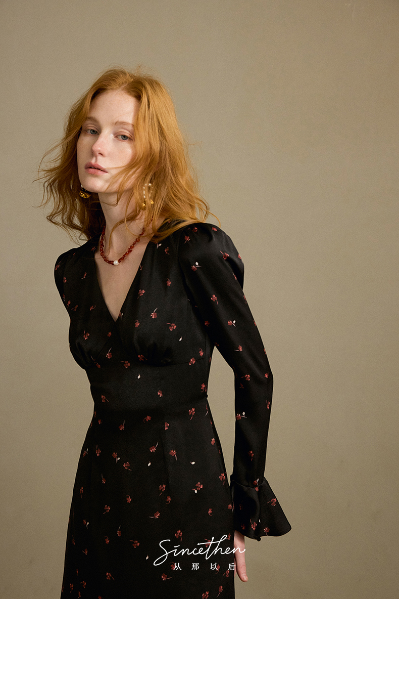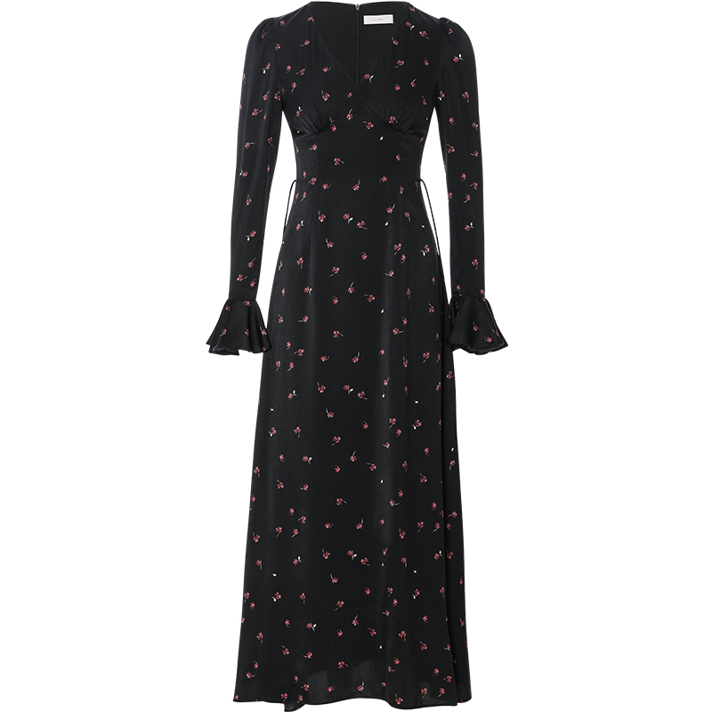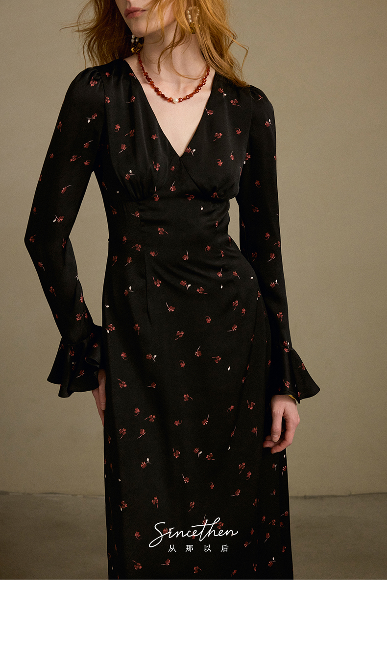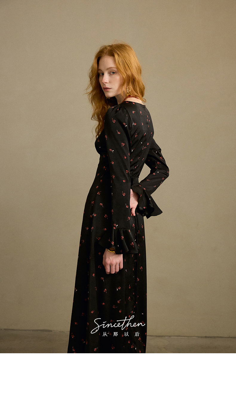 ST V-Neck Black Floral Long Dress