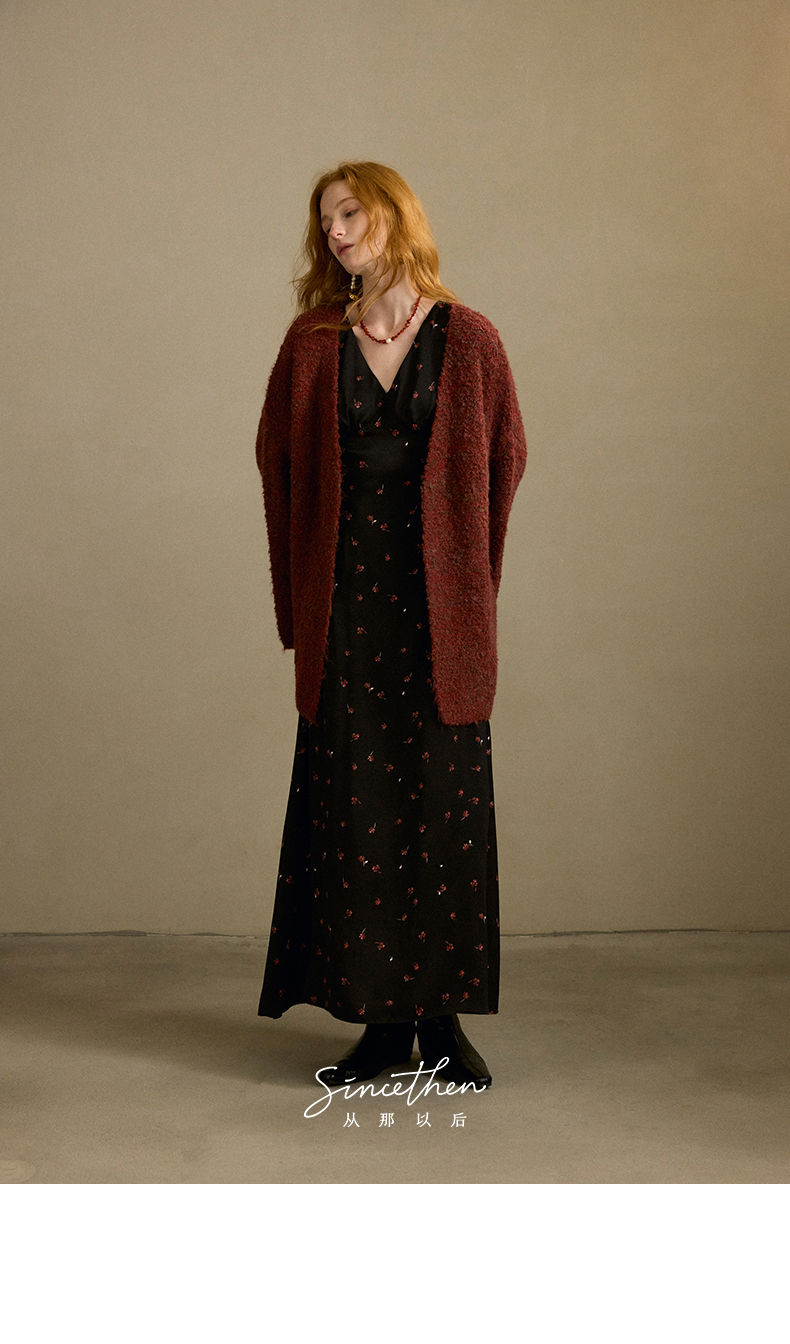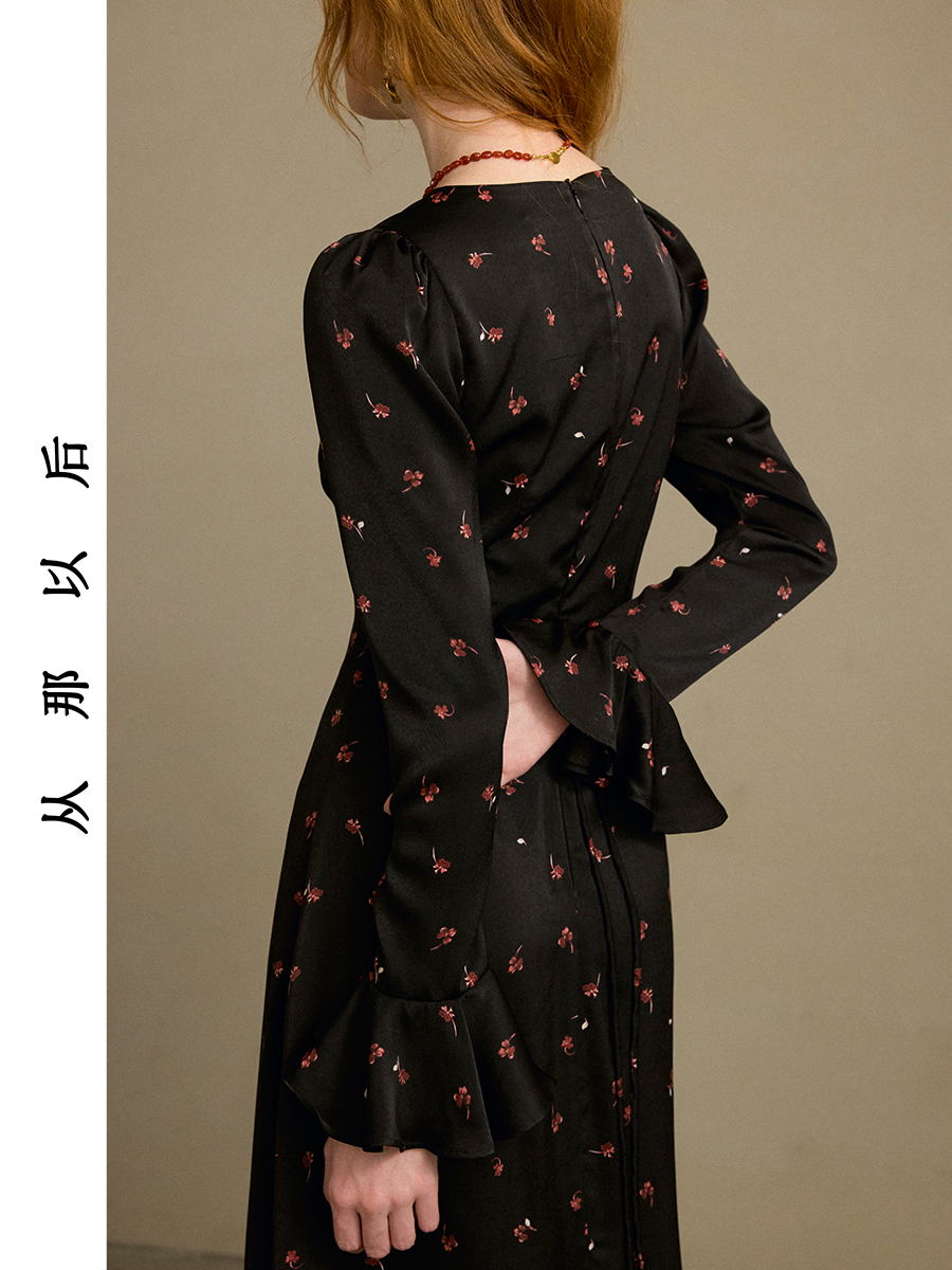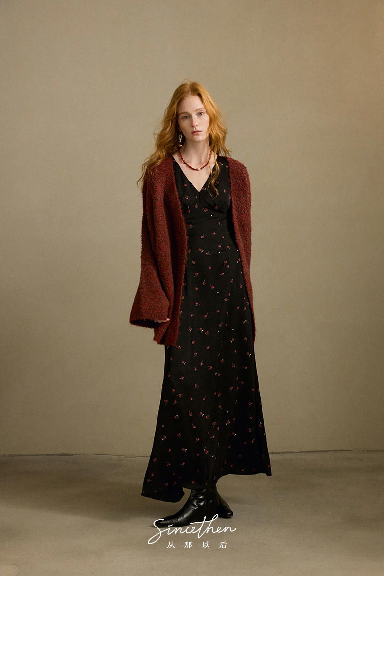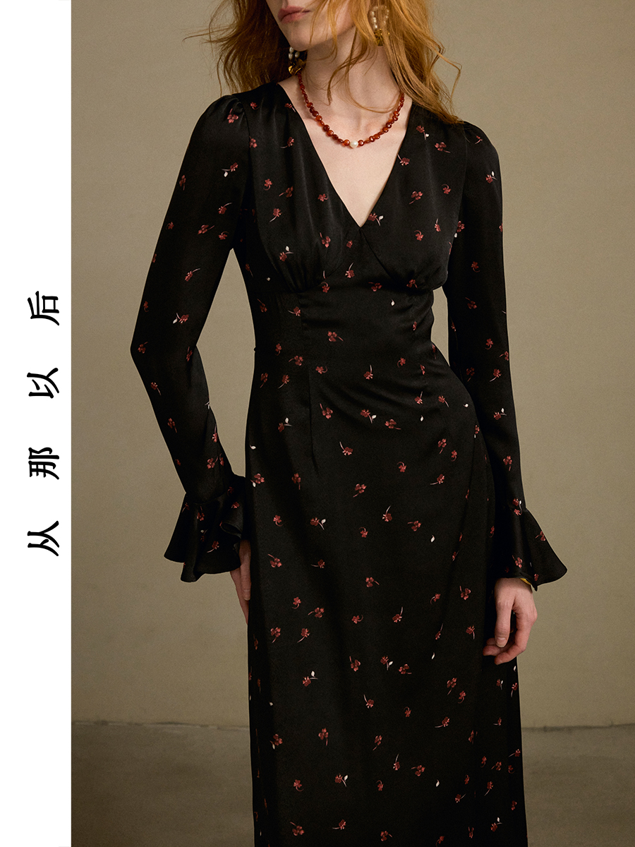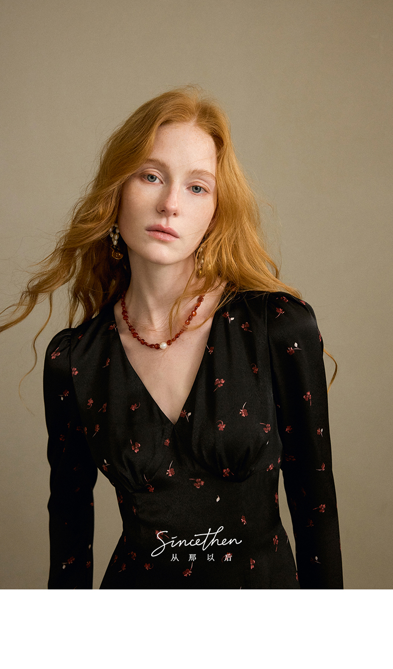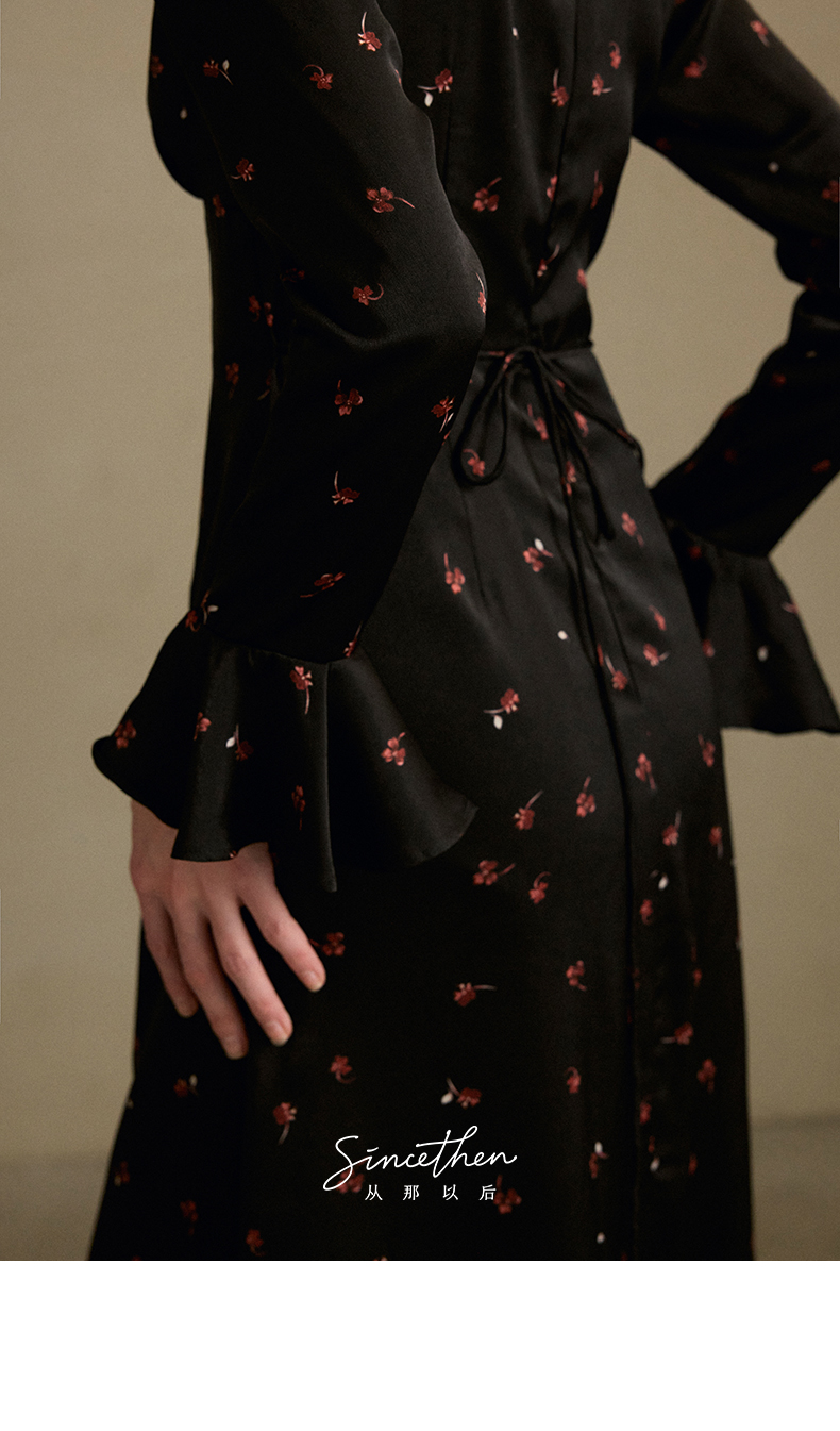 ST V-Neck Black Floral Long Dress