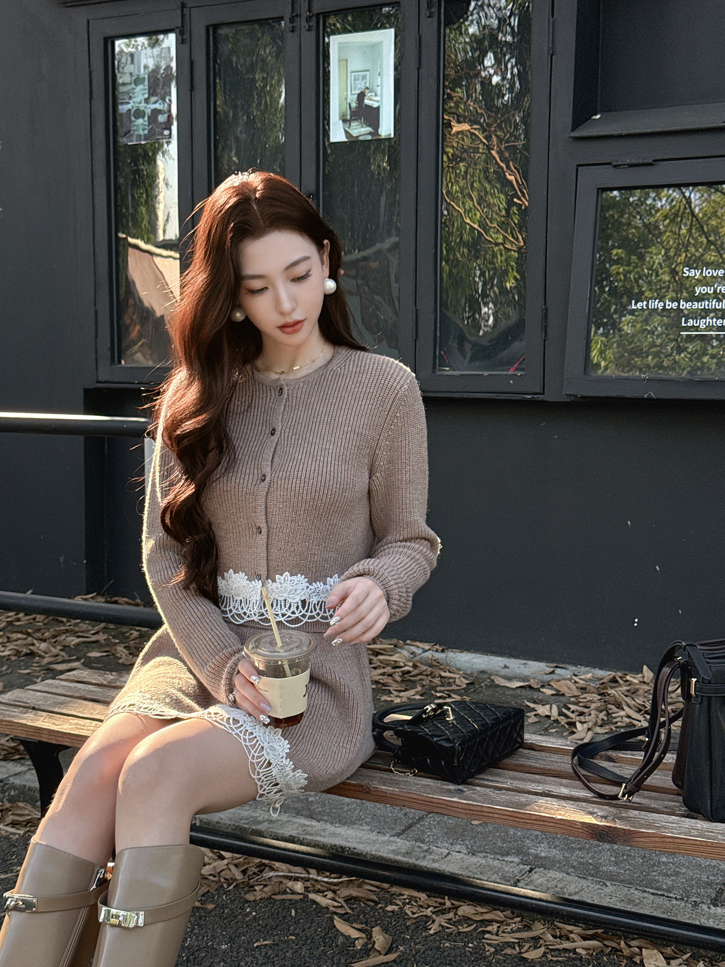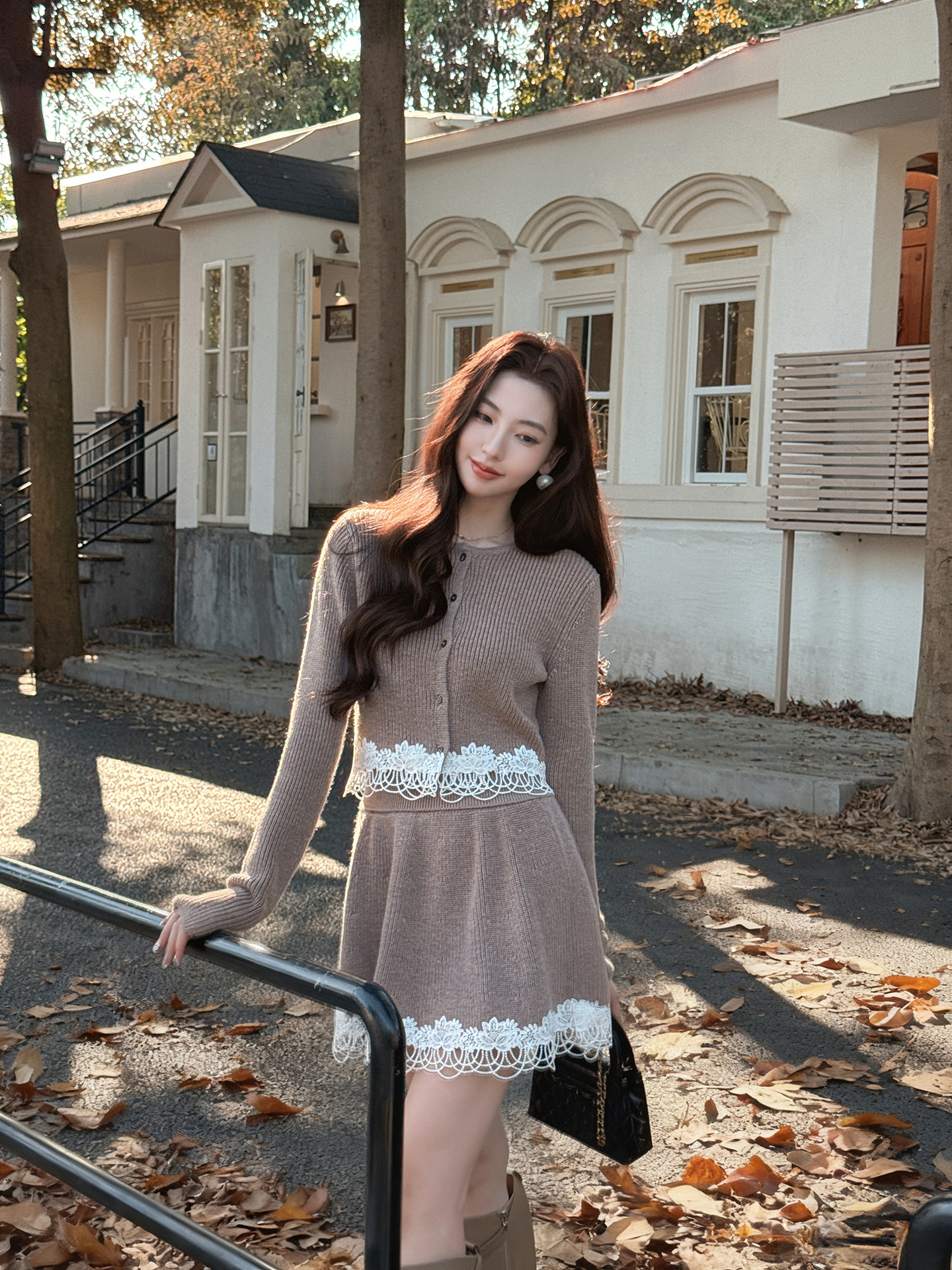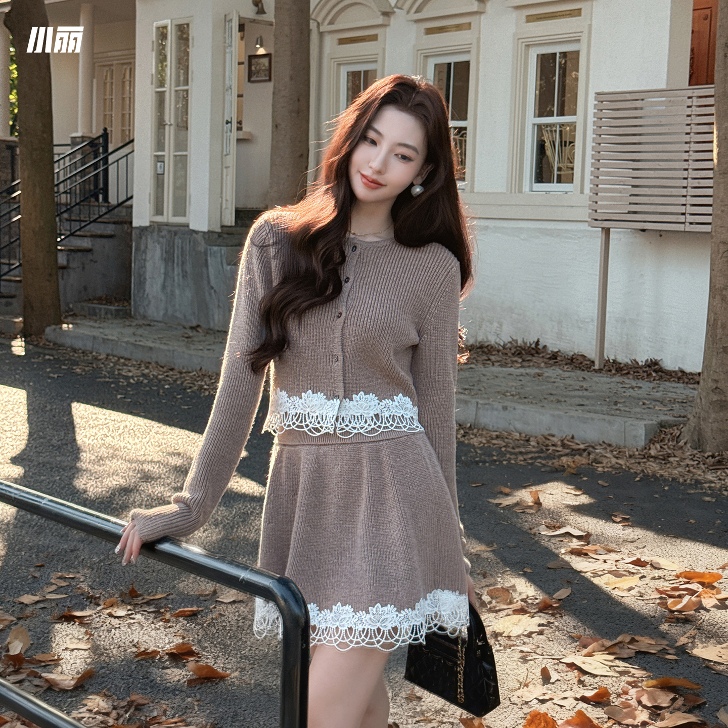 XIAOLI Beige Knitted 2Piece Skirt Set