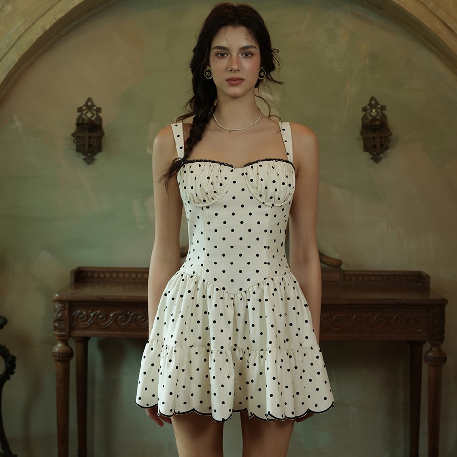 XIAOLI Polka Dot White Short Dress