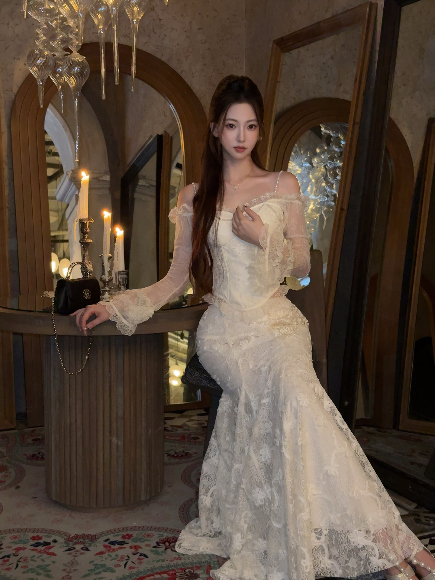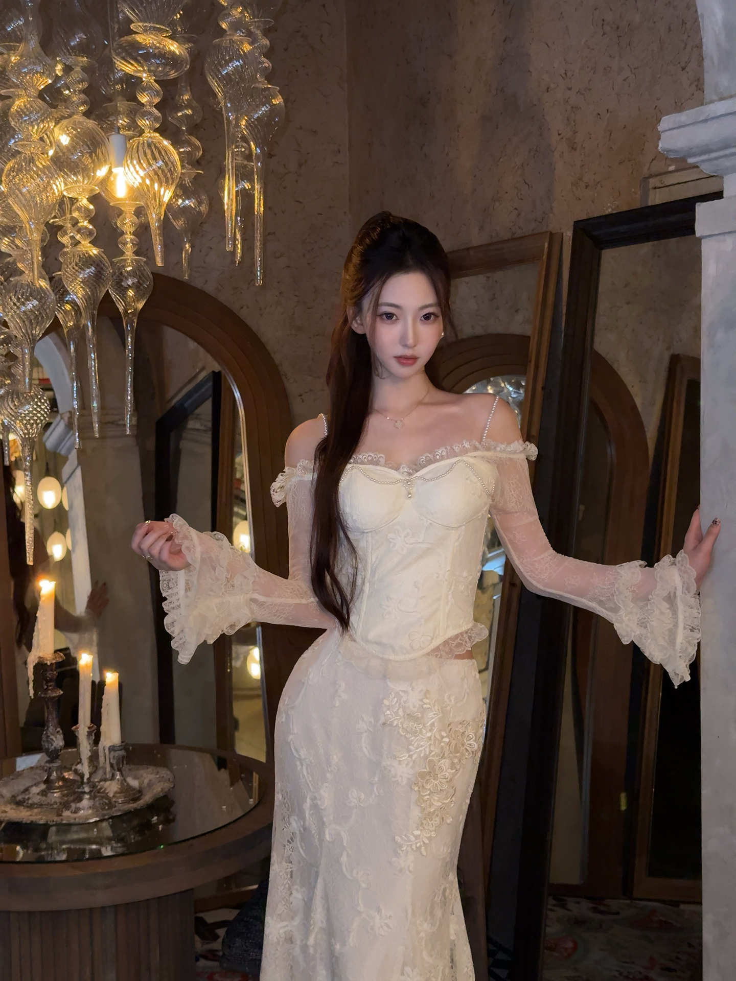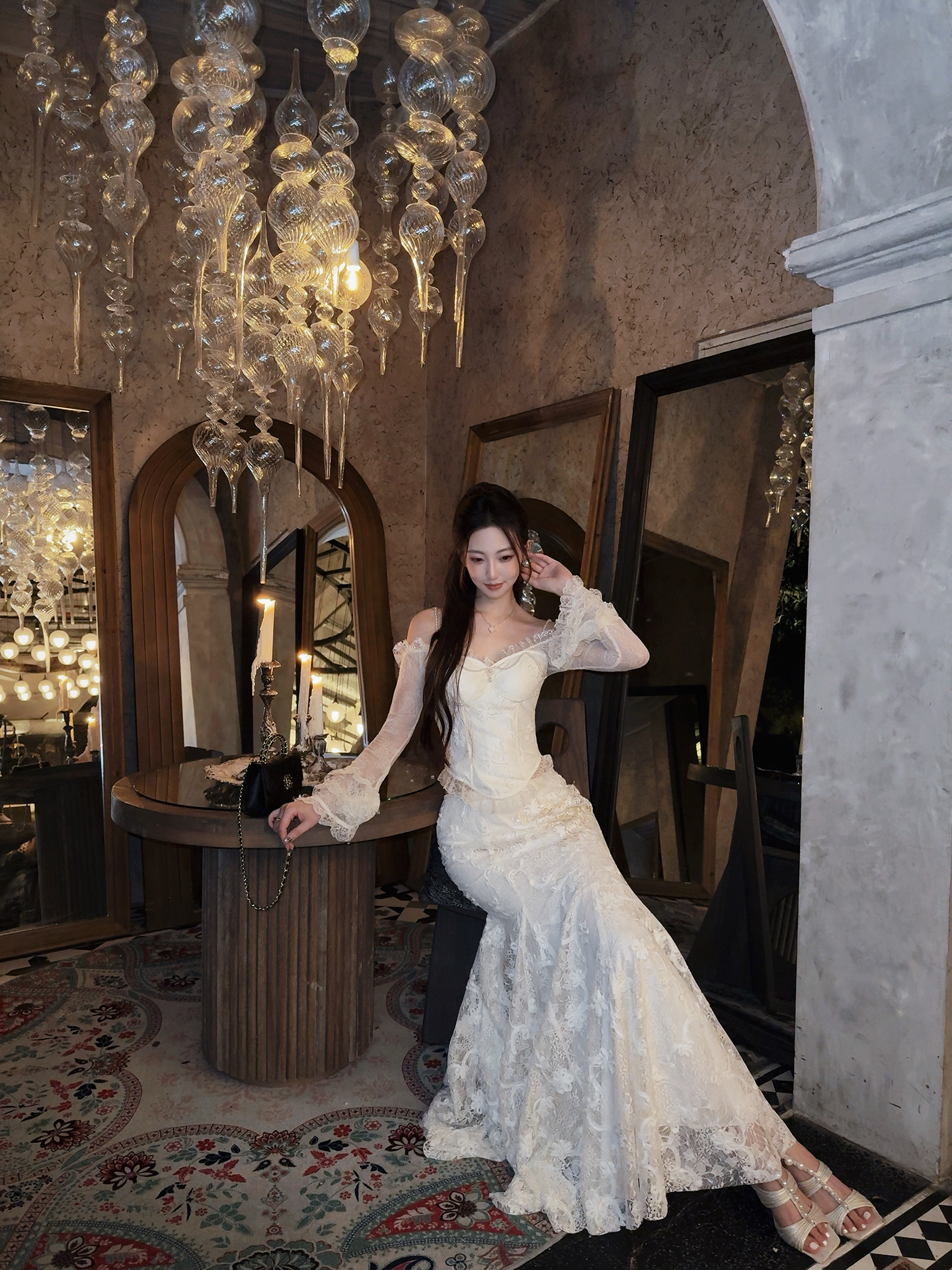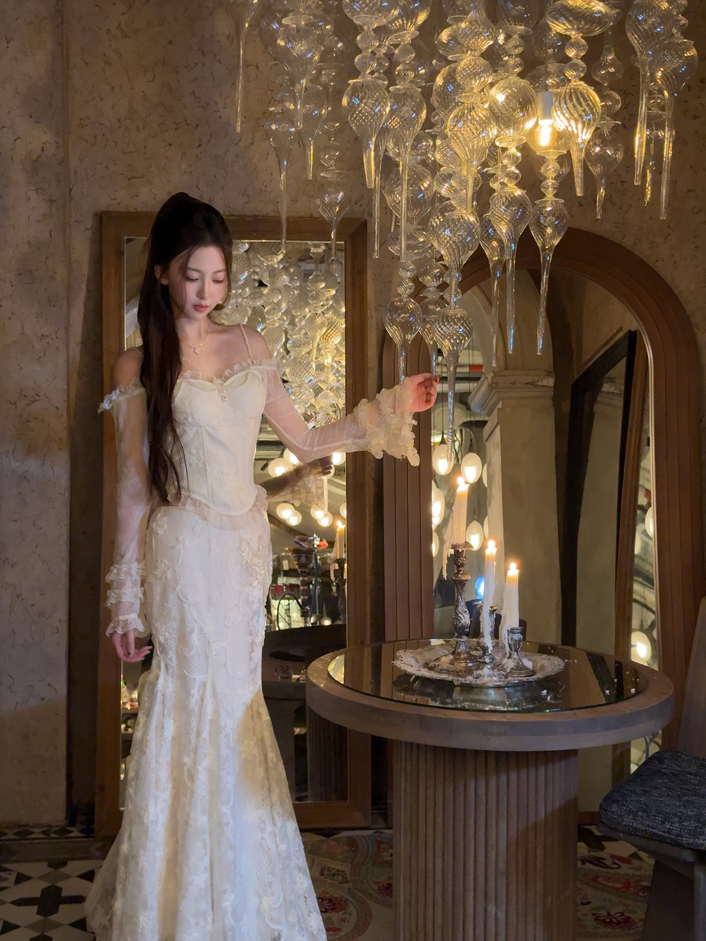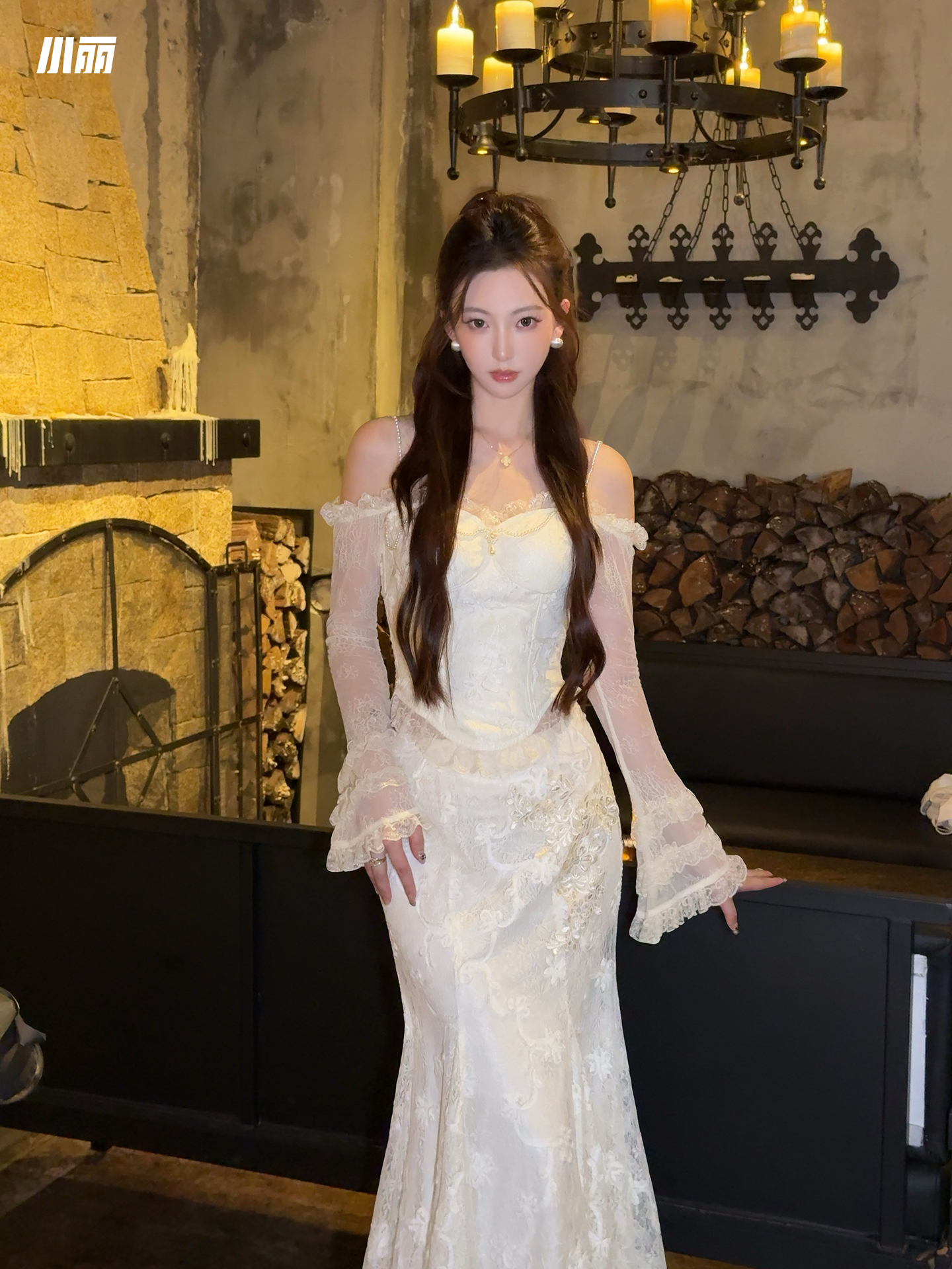 XIAOLI Vintage Style Lace Ruffled 2Piece Dress