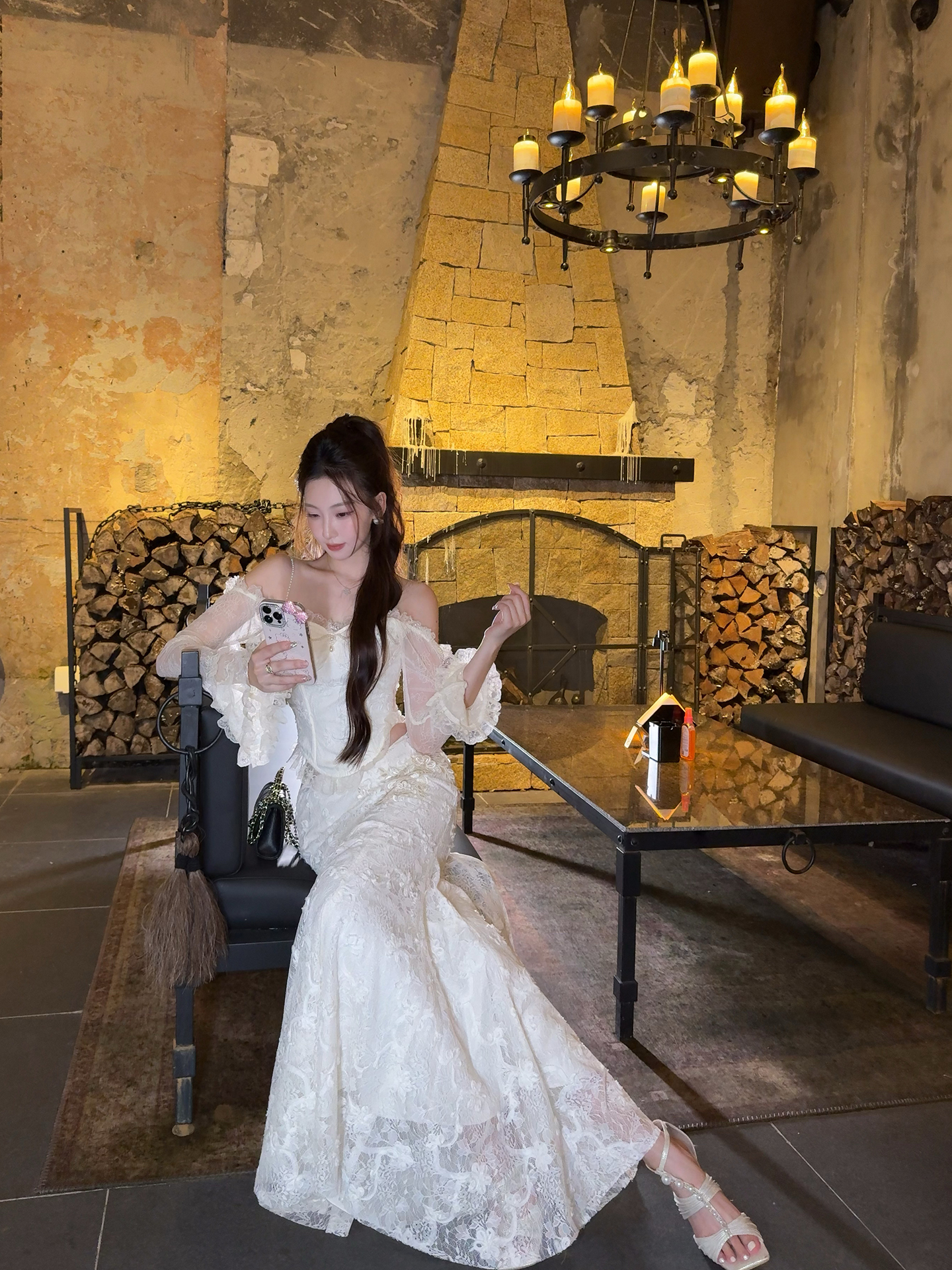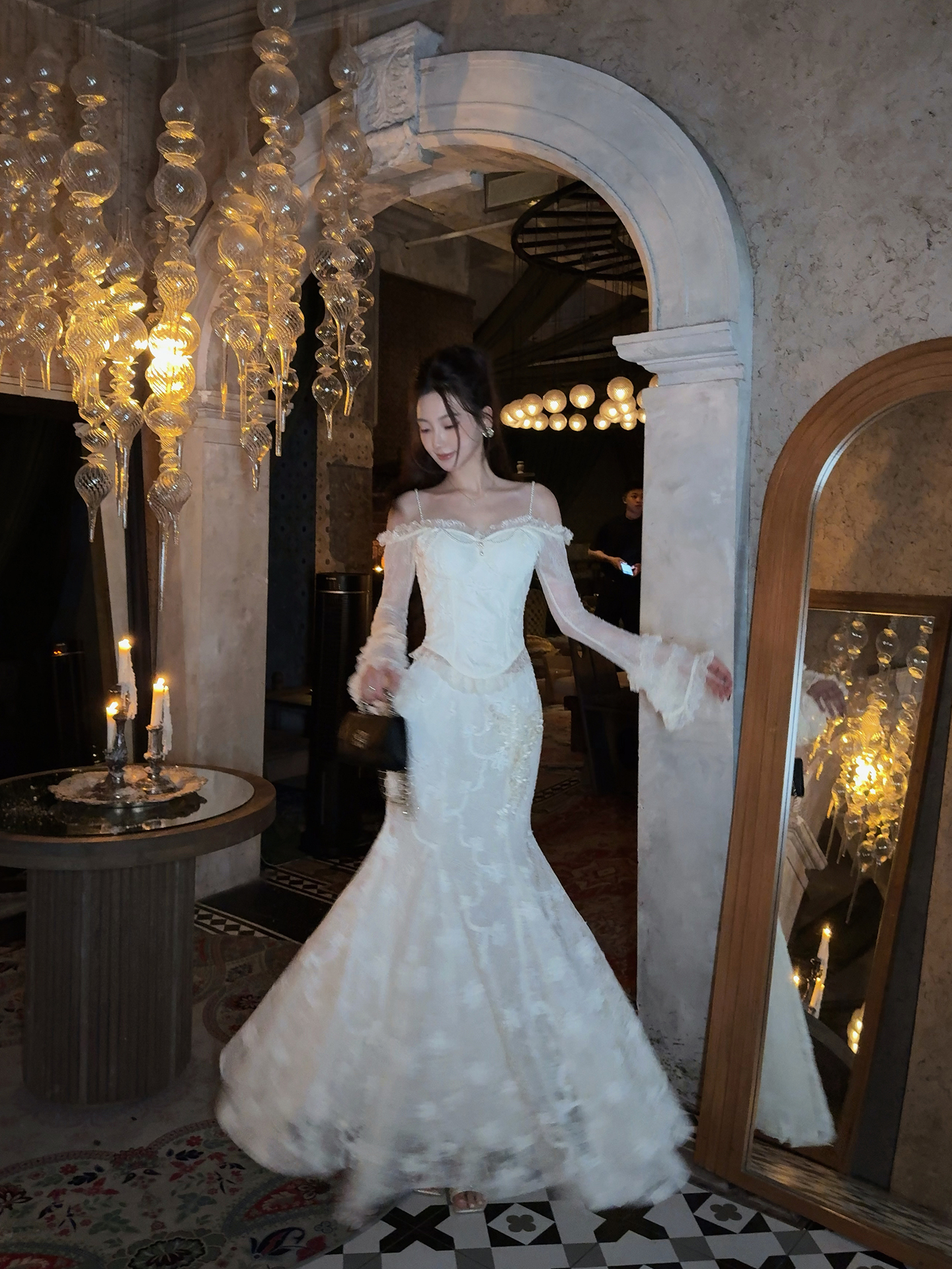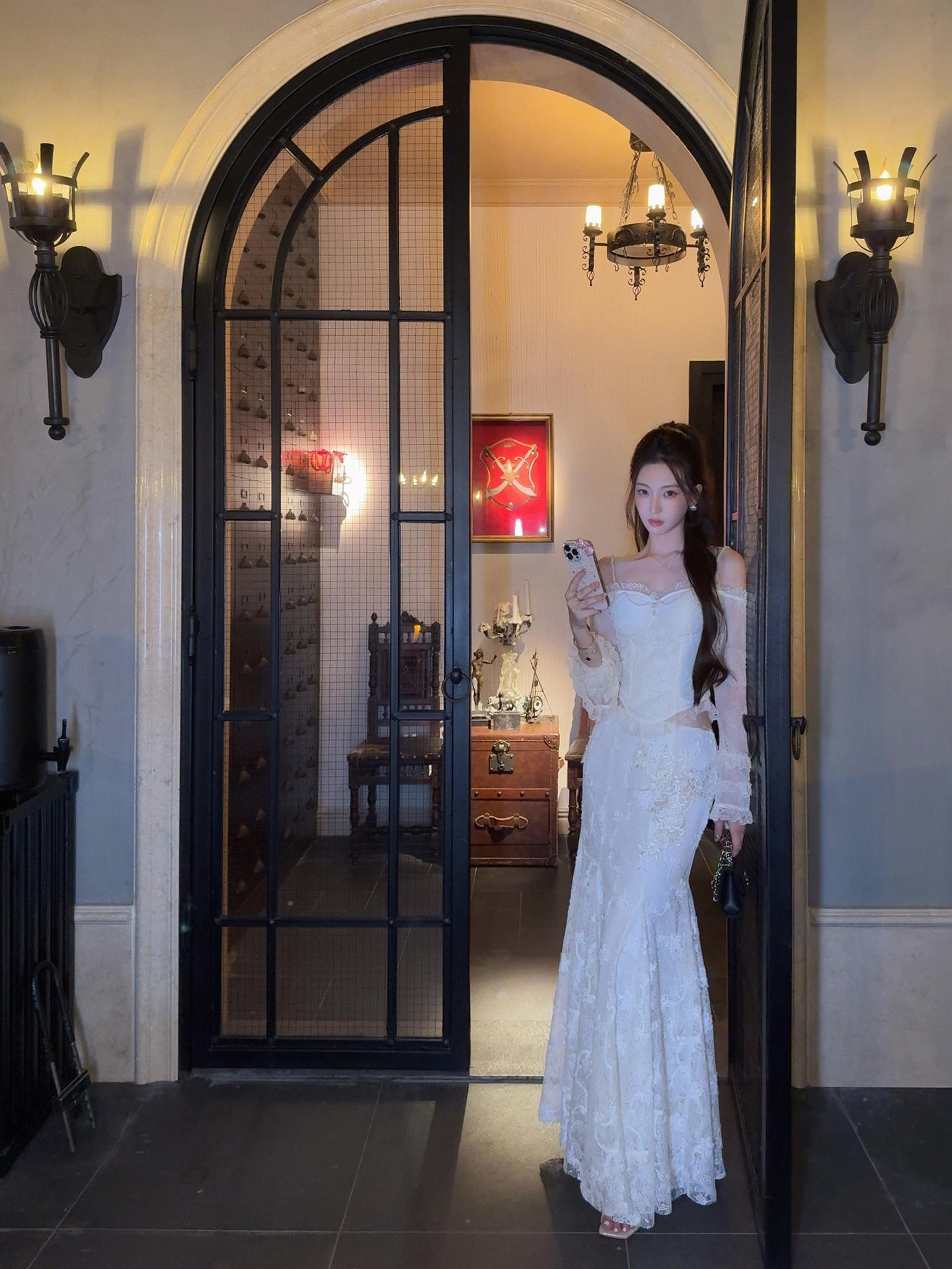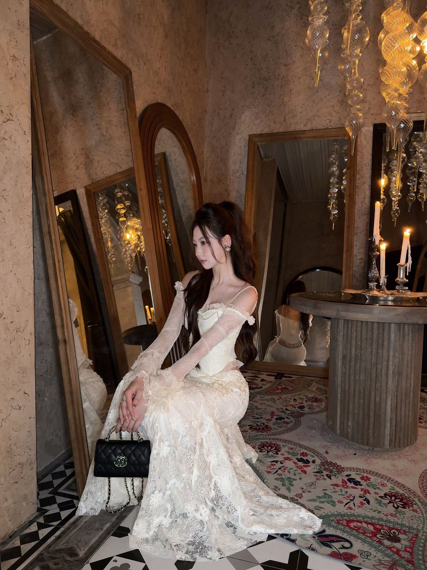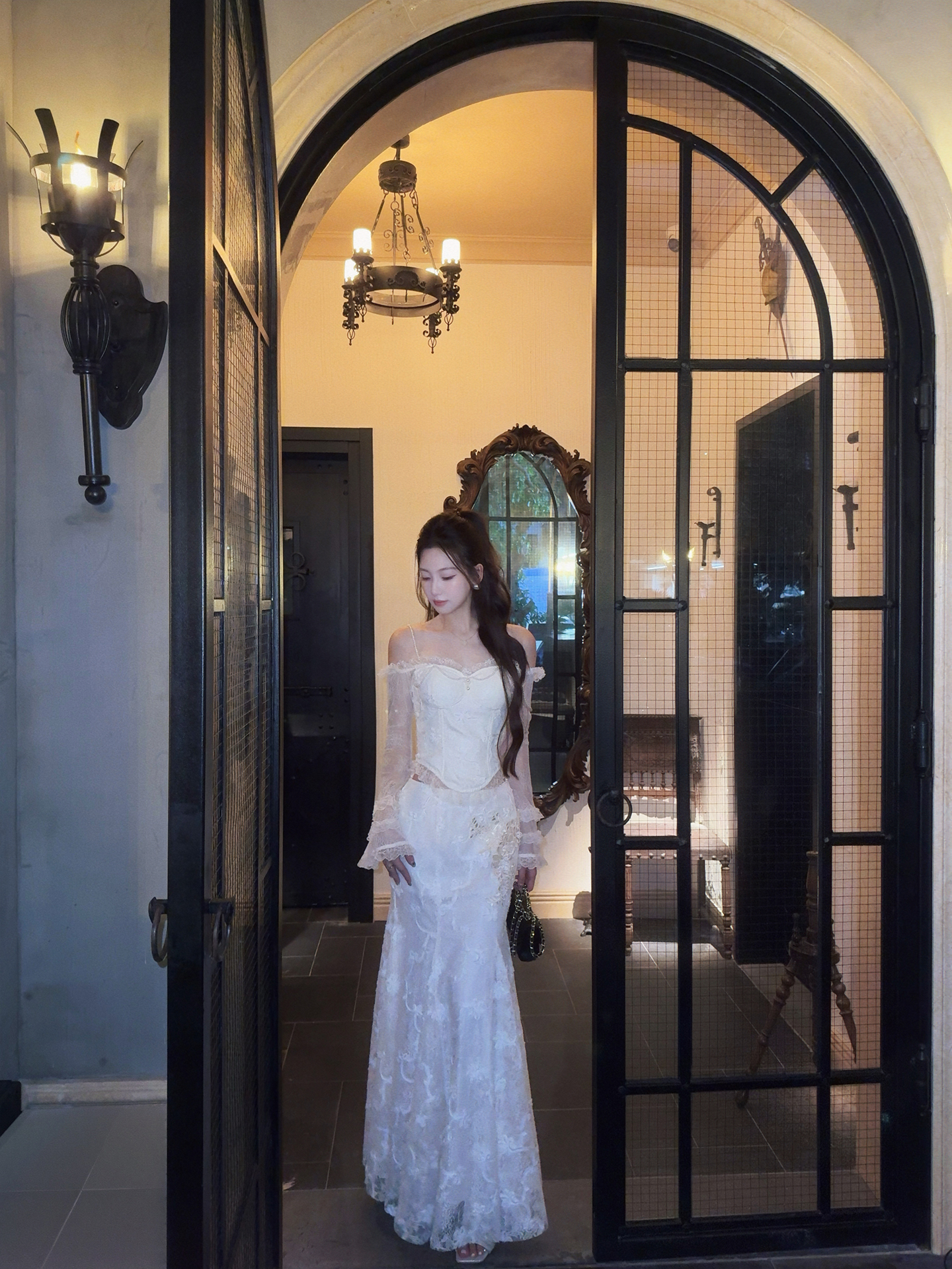 XIAOLI Vintage Style Lace Ruffled 2Piece Dress