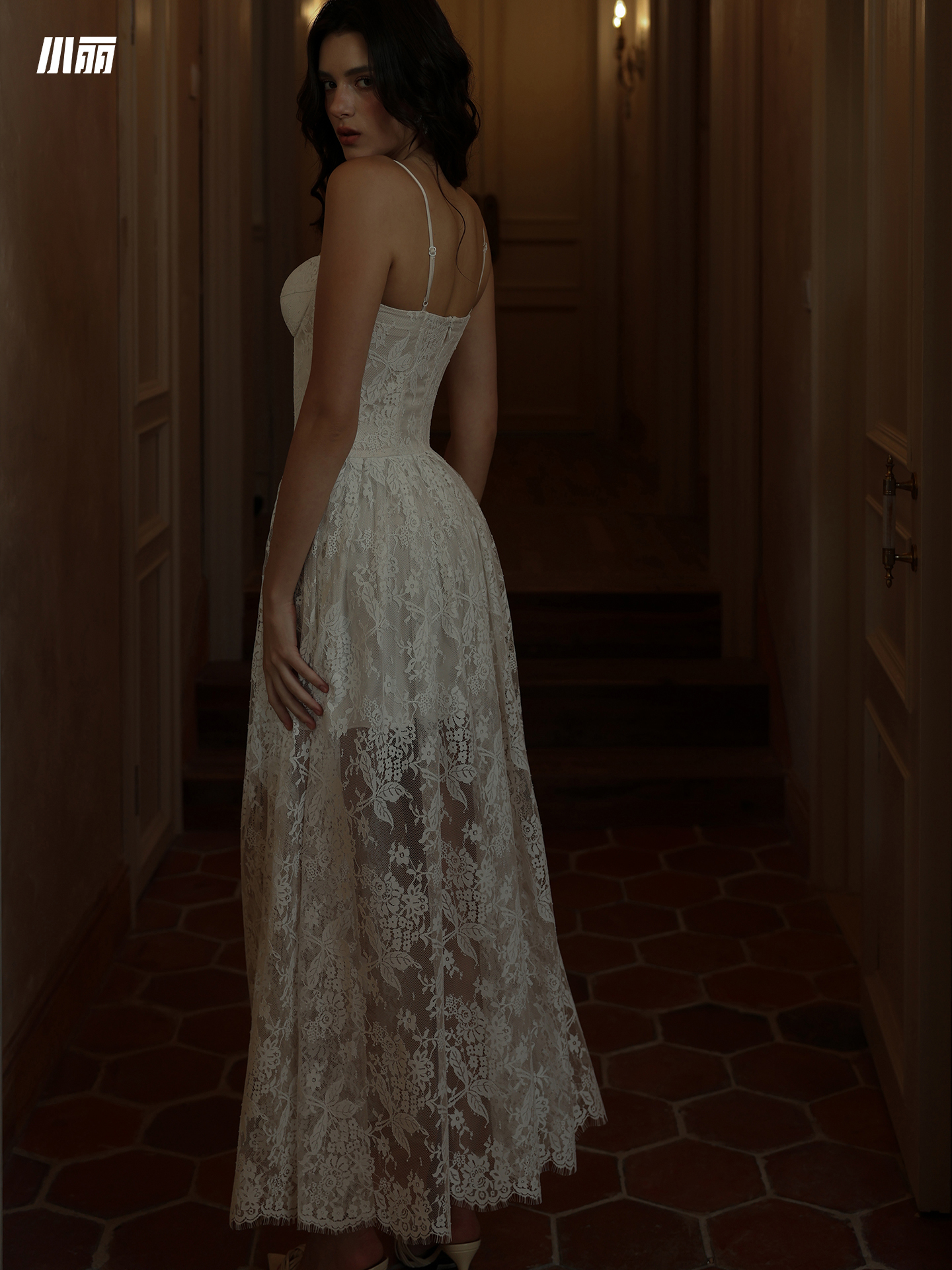 XIAOLI White Beautiful Floral Lace Long Dress