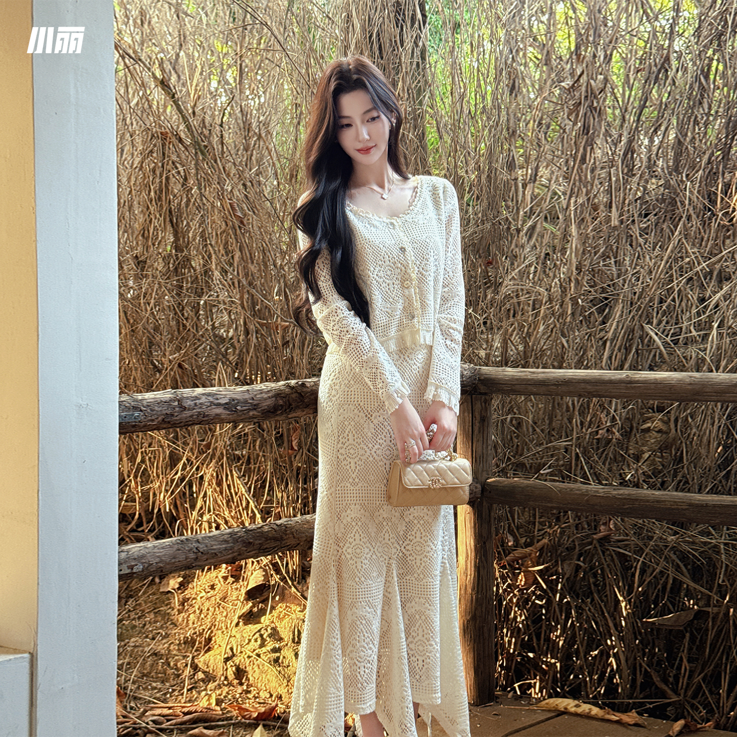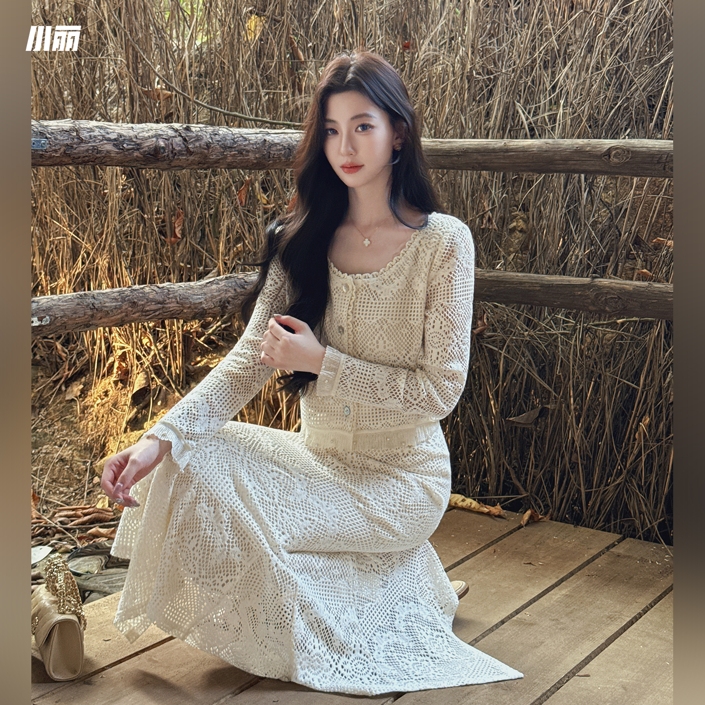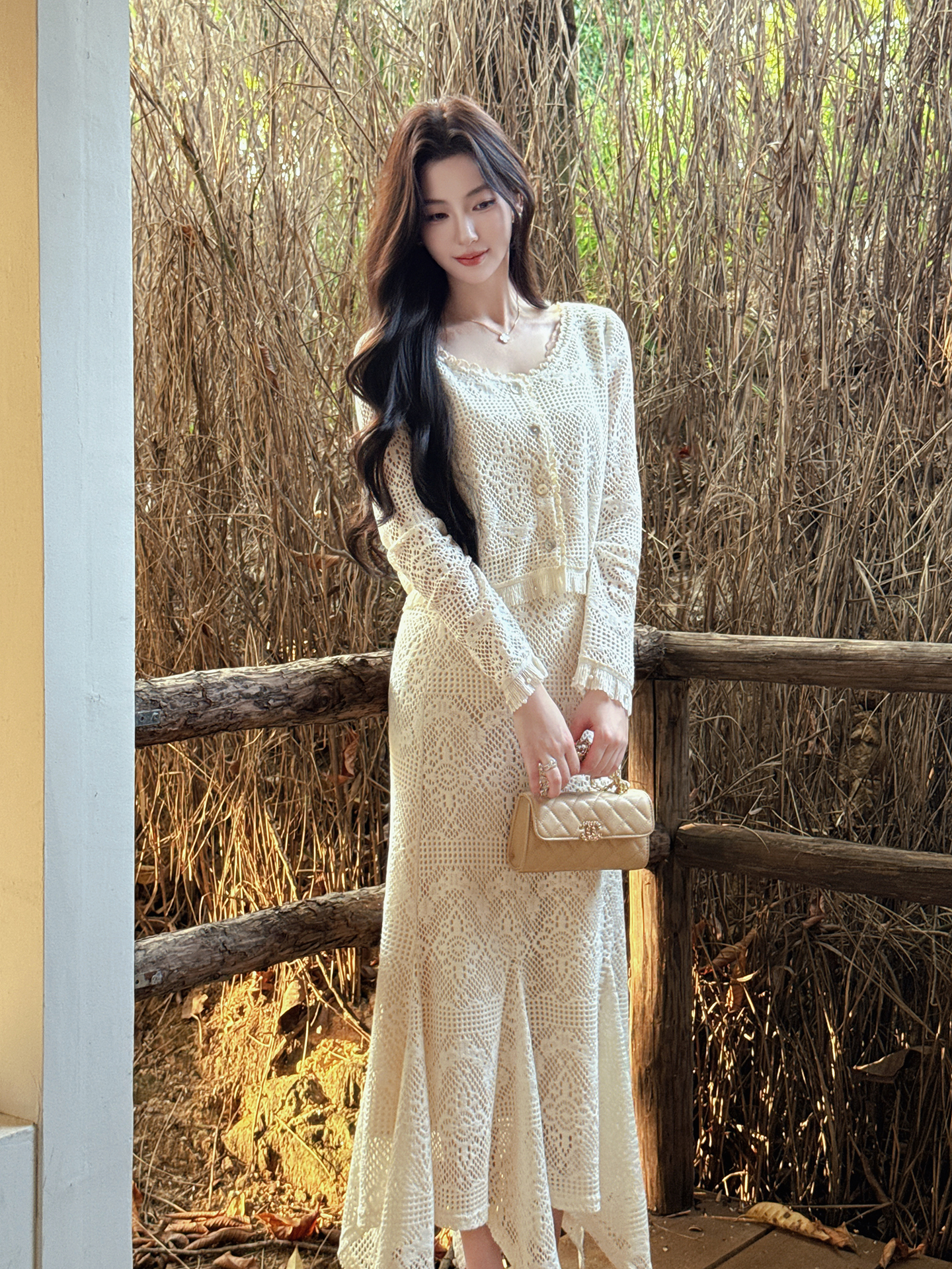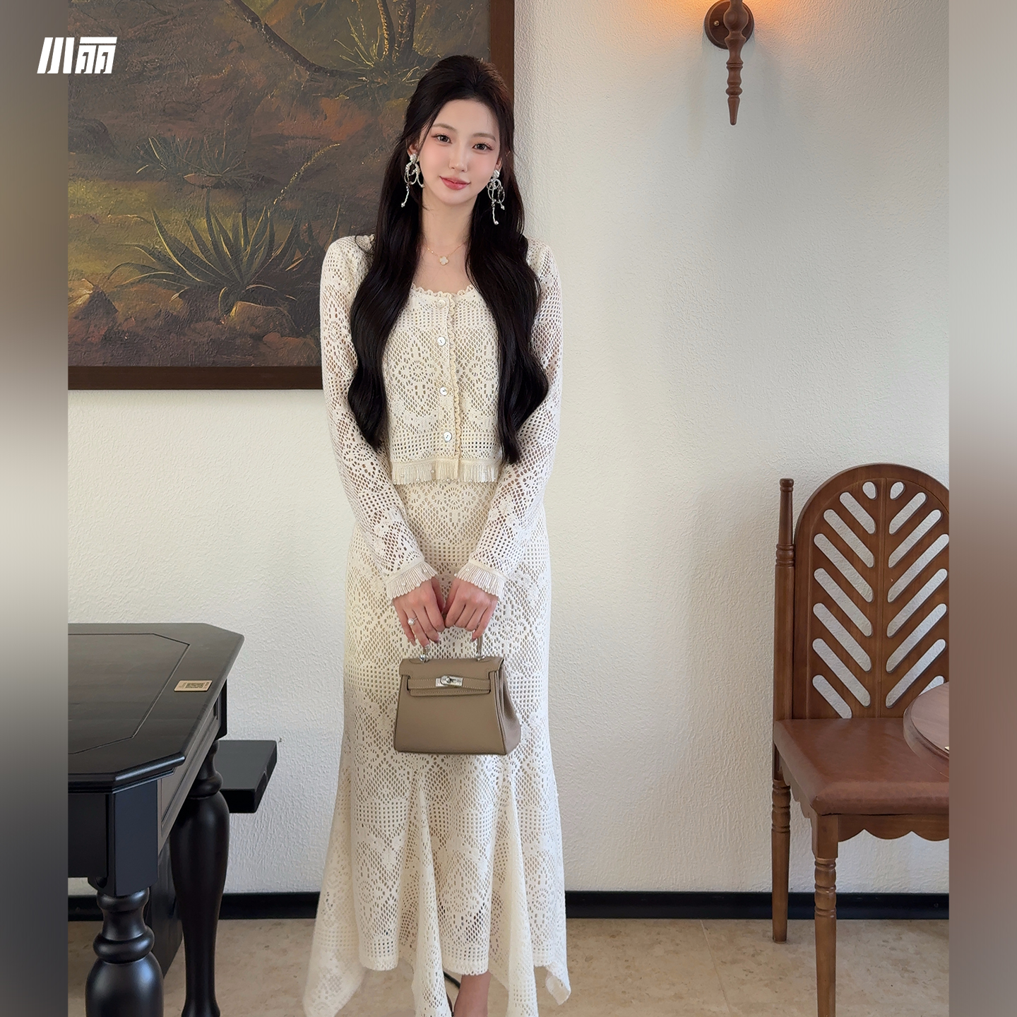 XIAOLI White Knitted Lace 2Piece Skirt Set