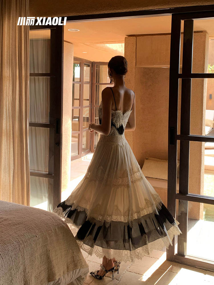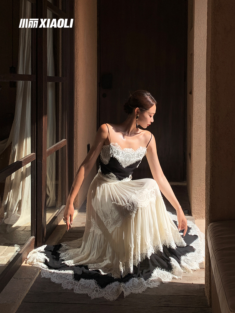 XIAOLI Back And White Lace Maxi Dress