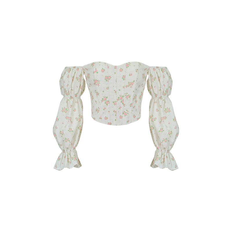 XIAOLI Floral Bubble Sleeve Top