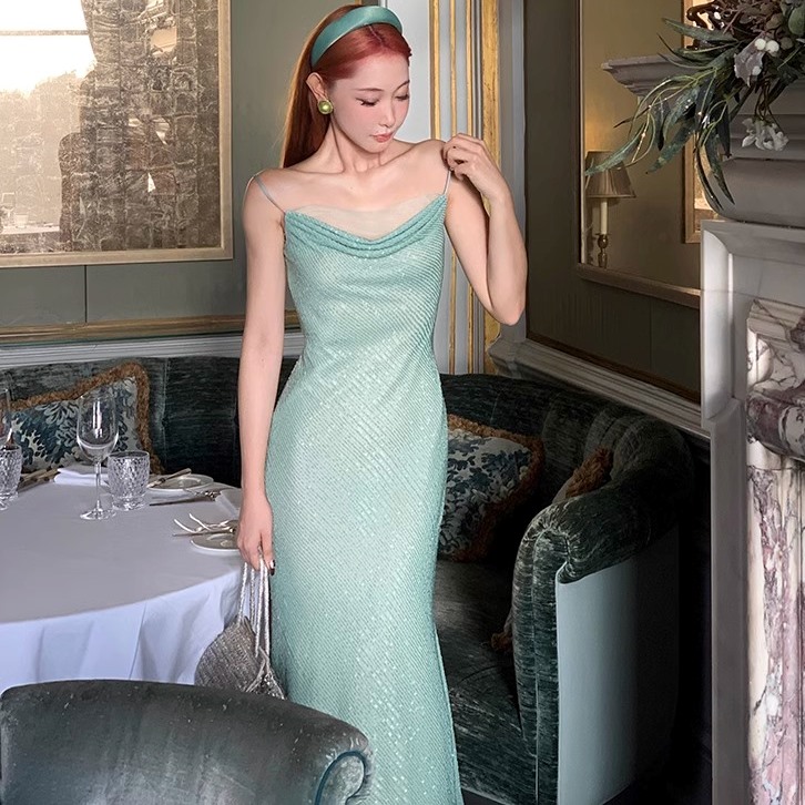 XIAOLI Green A-Line Strap Dress