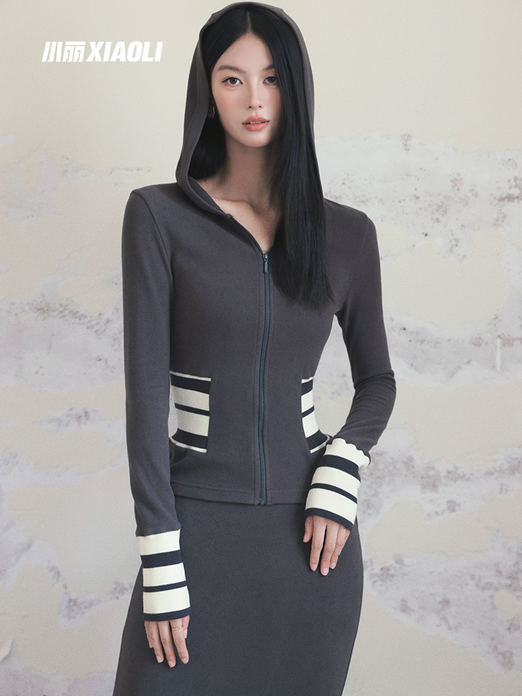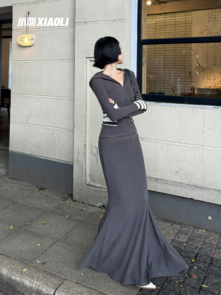 XIAOLI Grey Hooded 2Piece Skirt Set