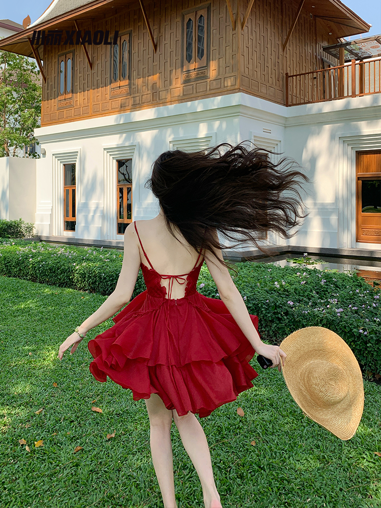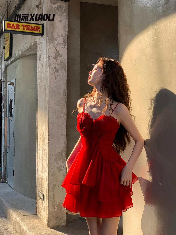 XIAOLI Red A-Line V-Neck Dress