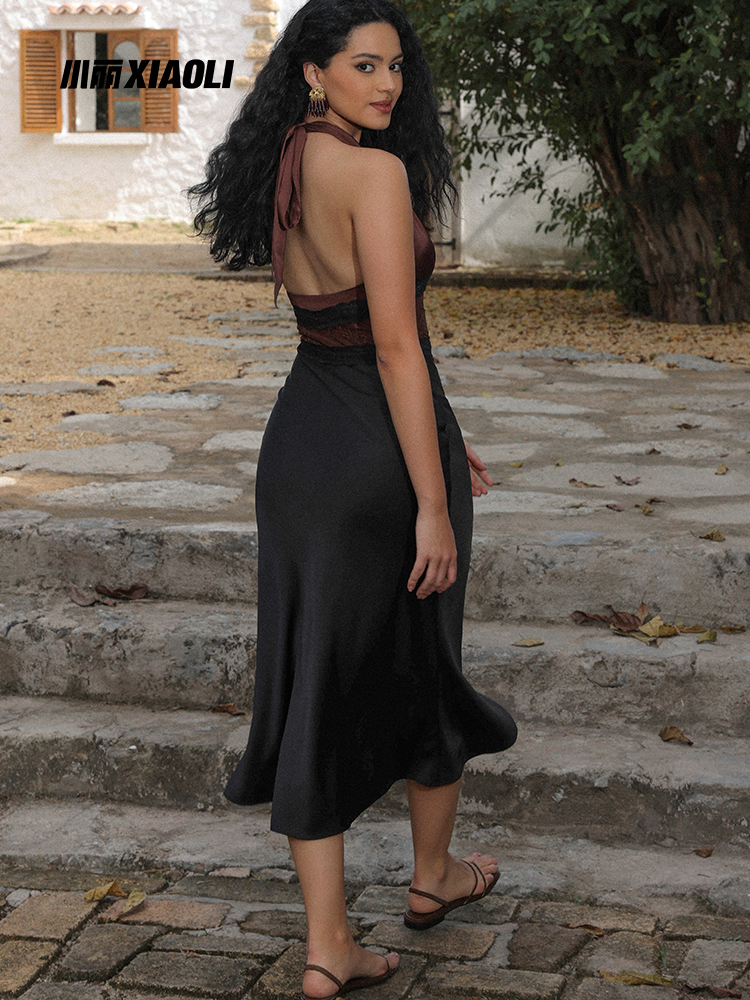 XIAOLI V-Neck Halterneck Fishtail Dress